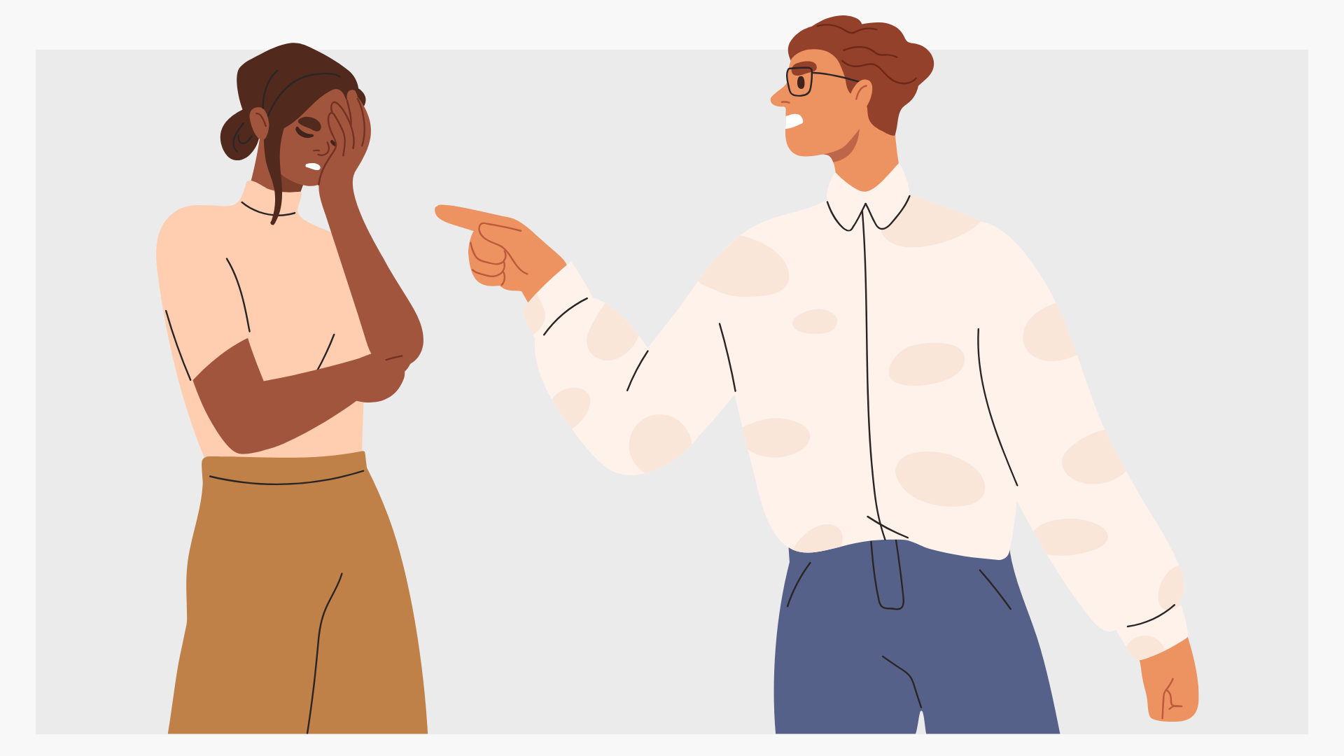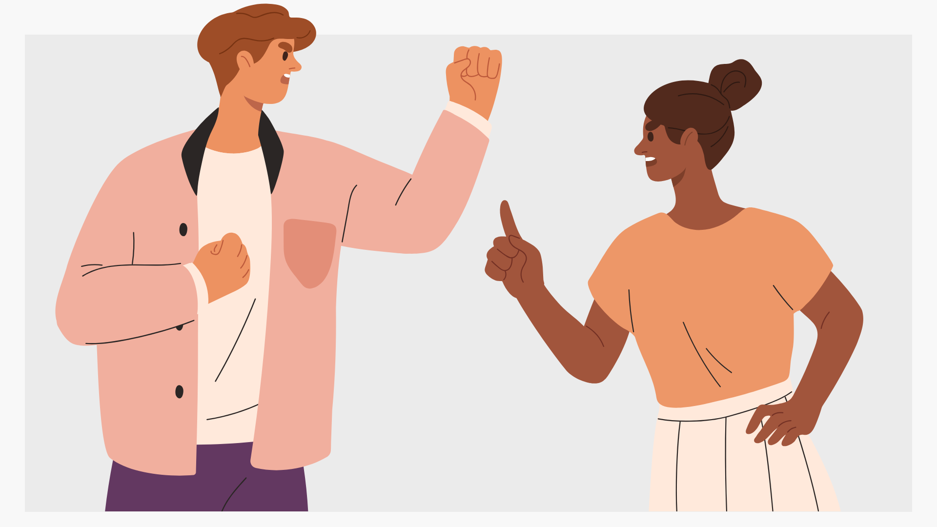Marc s'énerve rapidement mais se calme vite. Sarah, elle, a besoin de temps pour digérer sa colère. Quand elle est encore contrariée le lendemain, il lui reproche : "Tu rumines trop ! Il faut que tu passes à autre chose ! Tu es rancunière !" Elle se sent incomprise et invalidée dans ses émotions.